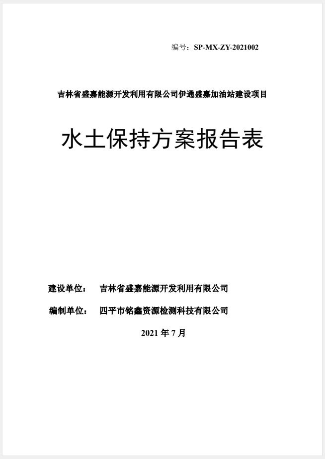 吉林省盛嘉能源開發(fā)利用有限公司伊通盛嘉加油站建設項目水土保持方案報告表